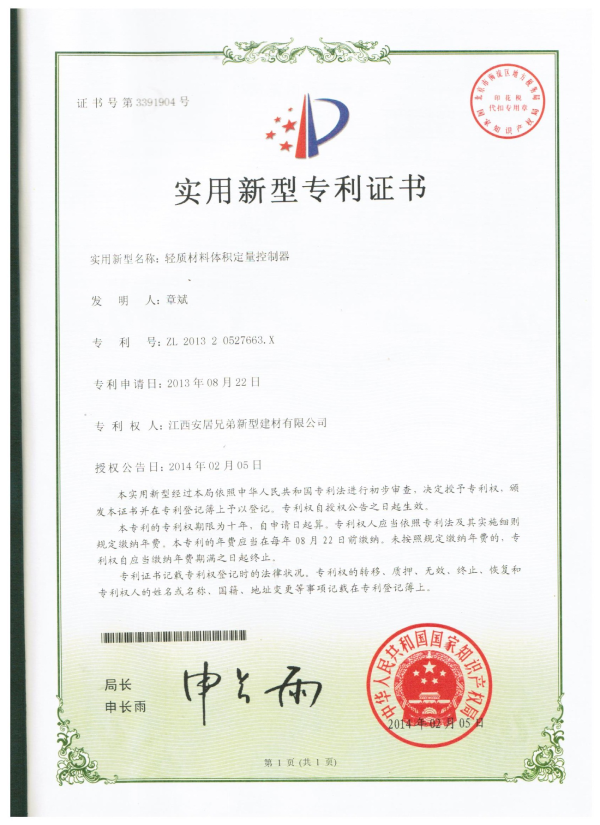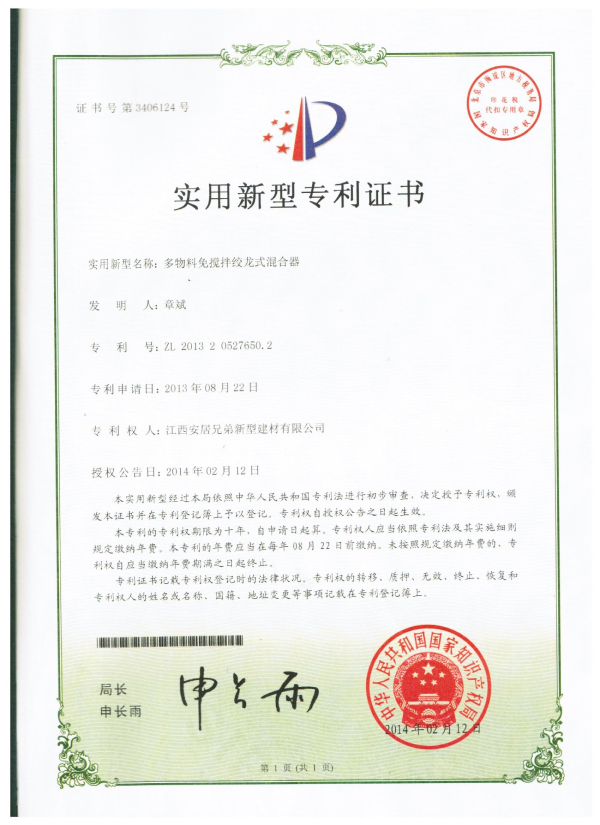安居兄弟具有完善的试验设备和科研能力,自主建立完备的砂浆实验室,由行业资深专家担任科研顾问,由专业硕士水平的研究人员组成强大的研发队伍,与高校进行技术合作,致力于建筑节能产品研究,不断开拓创新。目前公司经过多年研究,已经申请多项产品专利及专用设备专利。